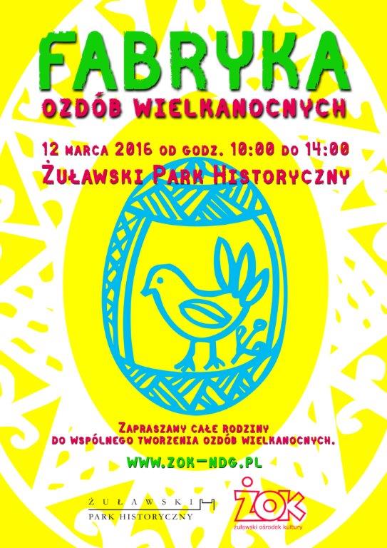 Zapraszamy całe rodziny do Fabryki Ozdób Wielkanocnych w Żuławskim Parku Historycznym już w sobotę 12 marca 2016 r. w godzinach 10.00-14.00. Wspólnie wykonamy pisanki, baranki,
