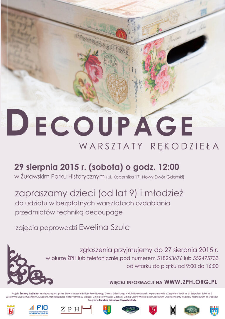 Zapraszamy dzieci (od 9 lat) i młodzież na warsztaty rękodzieła, które odbędą się 29 sierpnia 2015 r. o godz. 12:00 w Żuławskim Parku Historycznym. Tym
