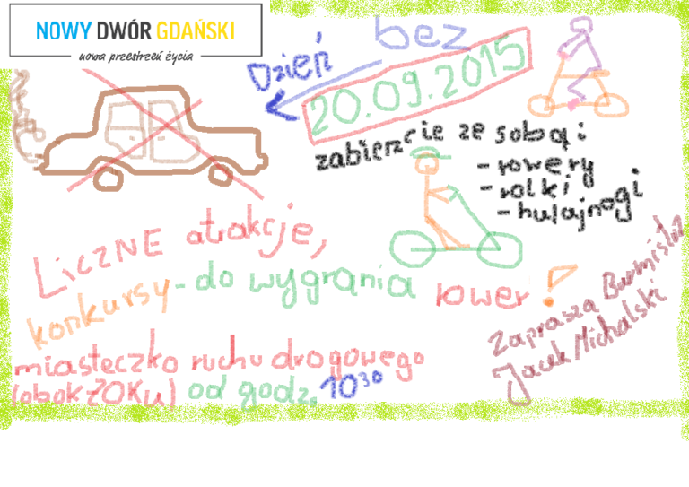 Na 20 września br. zaplanowane zostały w Nowym Dworze Gdańskim atrakcje związane z wrześniowym dniem bez samochodu. Przyjdźcie tego dnia w okolice Żuławskiego Parku Historycznego nie
