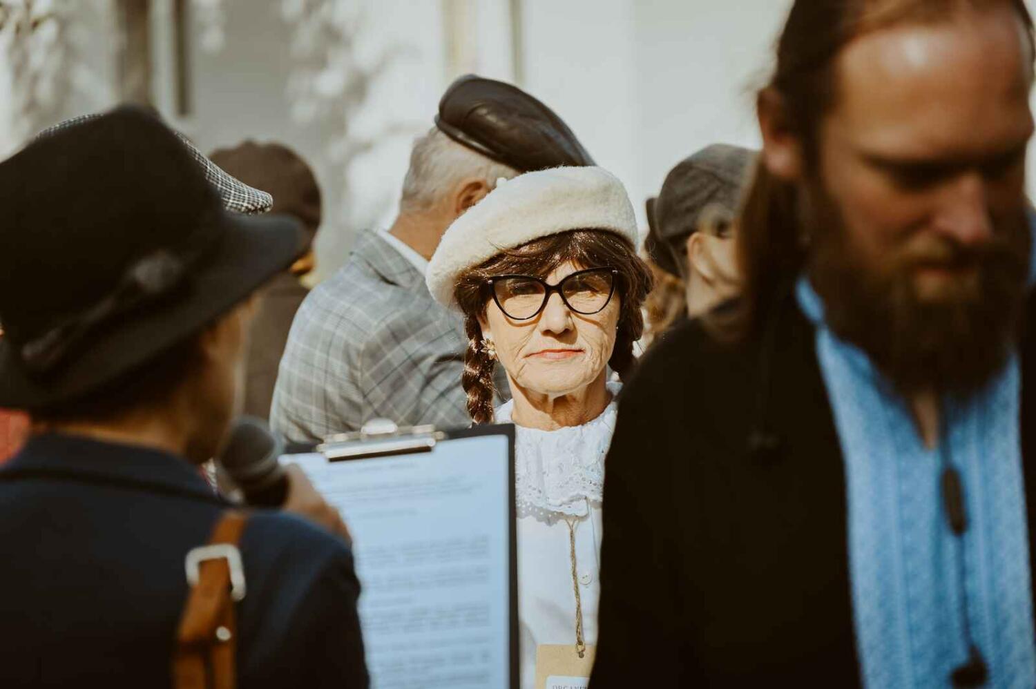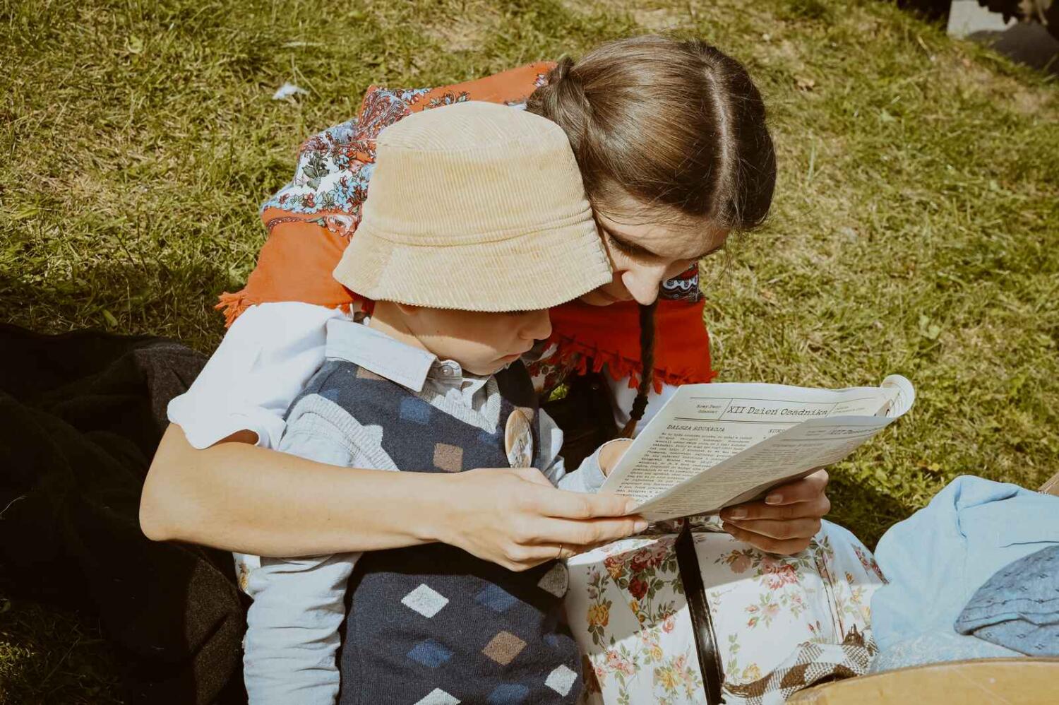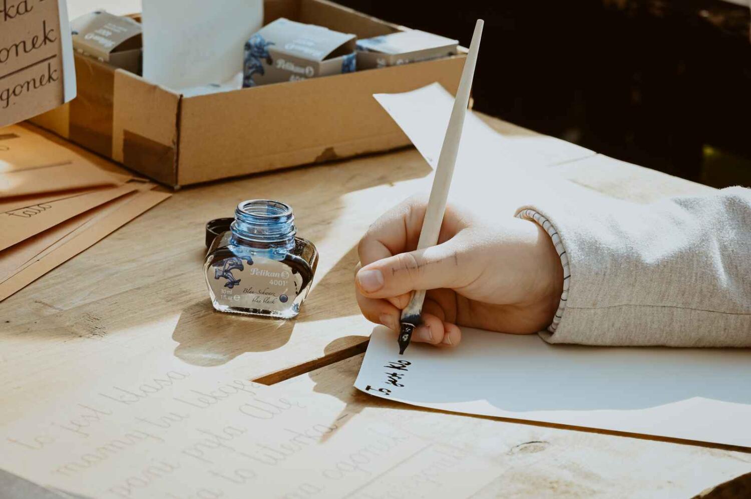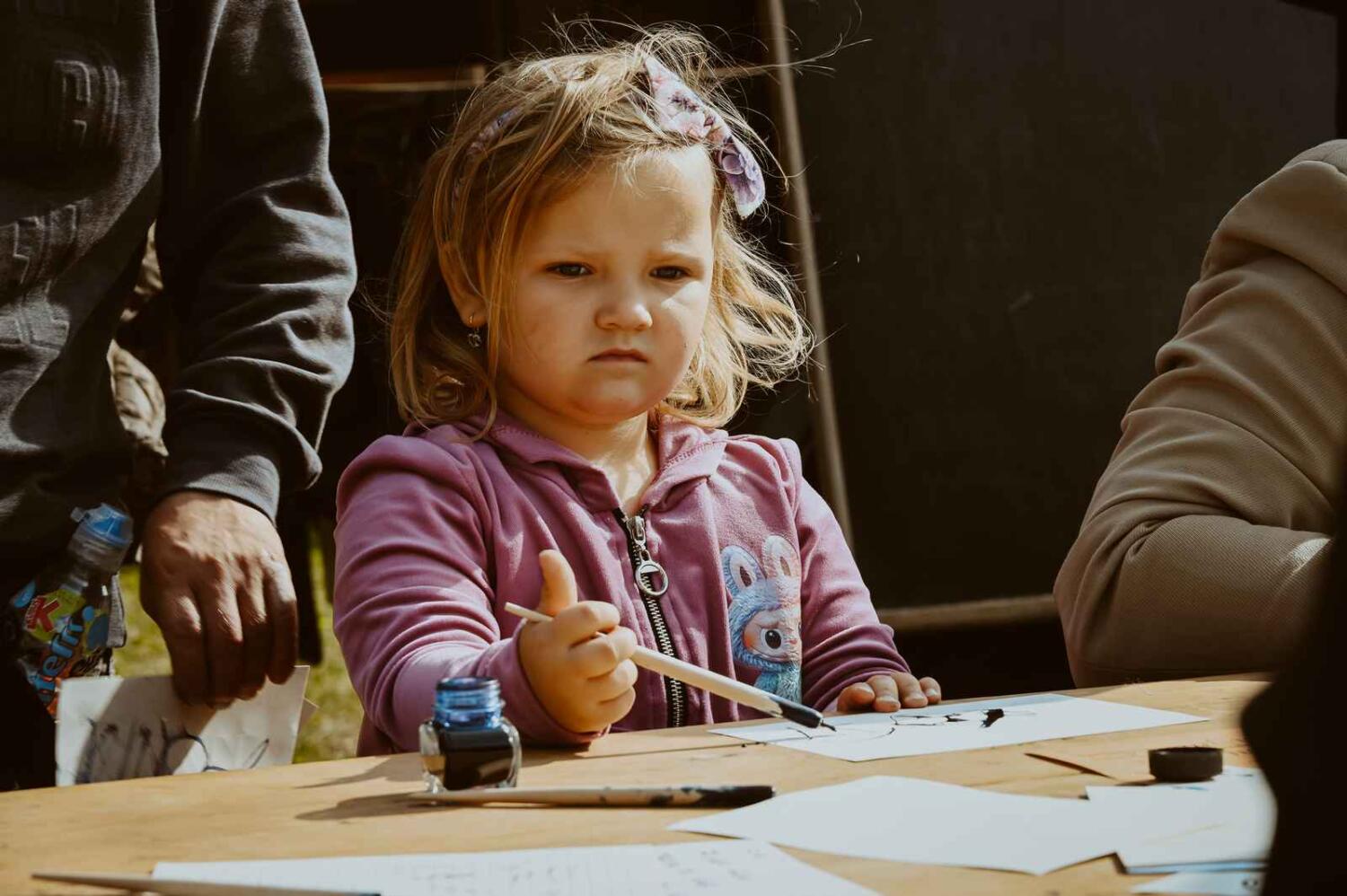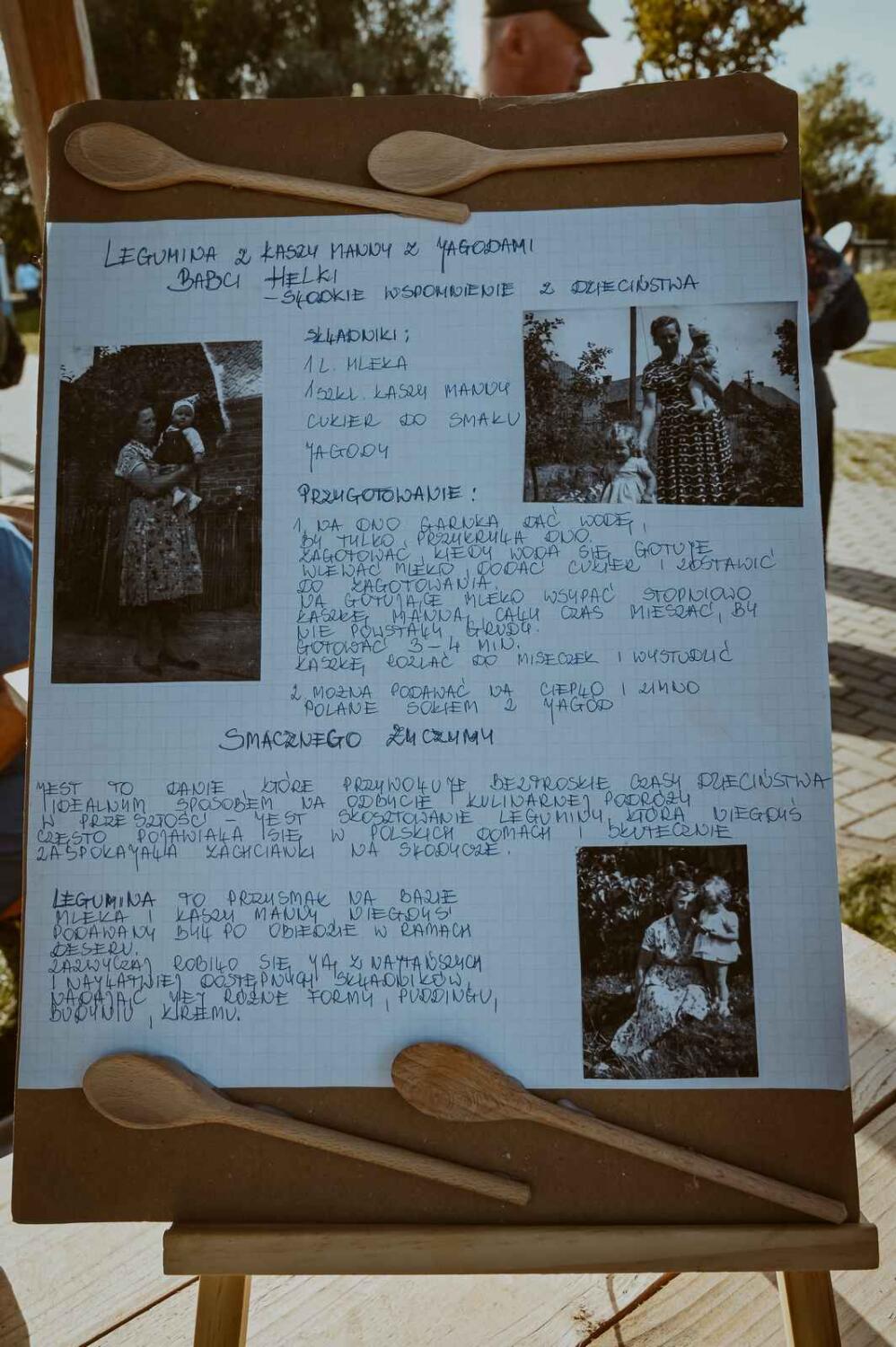Dzięki pięknym szkolnym eksponatom od Wiesia z U Młynarza – Zagroda Edukacyjna w Mokrym Dworze oraz z izby pamięci przy Szkole Podstawowej w Ostaszewie nasz Osadniczy Nauczyciel Franciszek z SGO poprowadził lekcję języka polskiego dla dorosłych analfabetów. Chętni mogli też wziąć udział w warsztacie kaligrafii, prowadzonym przez Szymona Paczkowskiego. A najmłodsi w ramach „przerwy” mogli wspólnie z Mają Rausch stworzyć lalkę szmaciankę.
